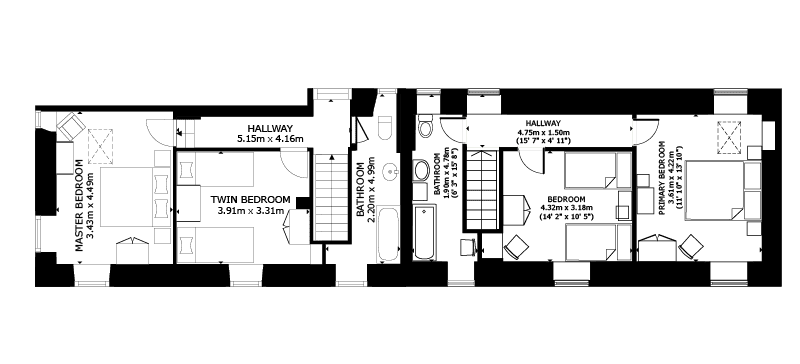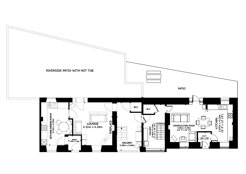 - The property can configured as two individual cottages if so desired by simply locking the interconnecting door.